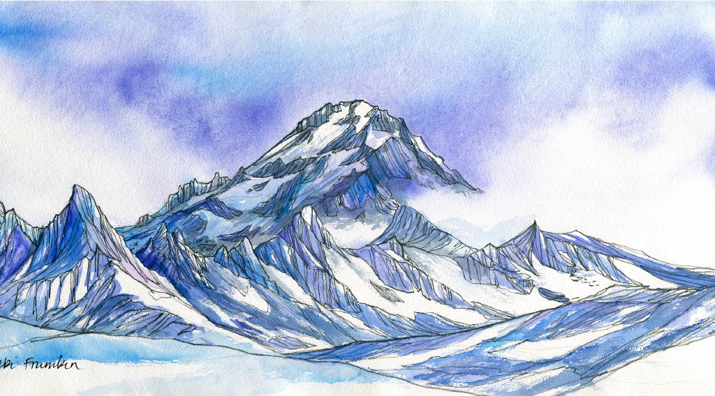 Nikki Frumkin is an artist and alpinist from Seattle. Her work is inspired by time spent hiking, climbing and mountaineering in the beautiful Pacific Northwest. Immersed in nature, Nikki weaves the energy of her outdoor adventures into watercolors, sharing the feeling of being amidst rugged peaks and wild landscapes.
